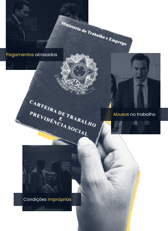 Se você está lidando com problemas como falta de carteira assinada, assédio no trabalho, rescisão de contrato não paga ou está em uma situação de estágio irregular, você tem direito a soluções jurídicas.